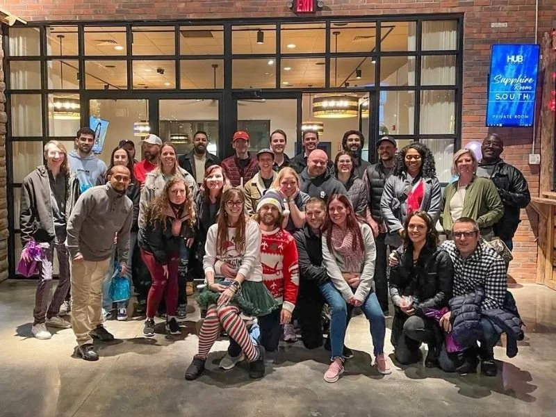 Forget the boring ballroom. The Hub Stadium brings food, drinks, and games that your team will still be talking about in January.